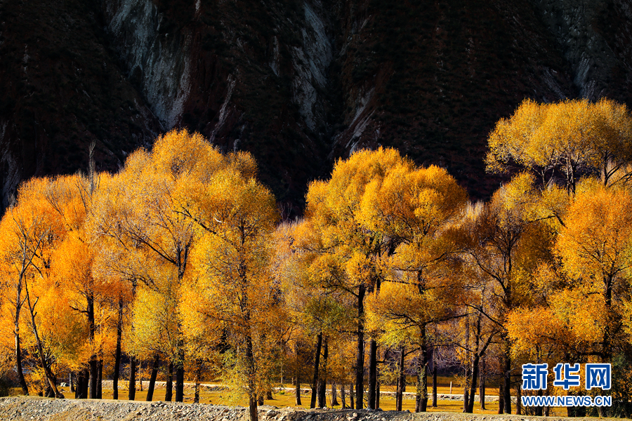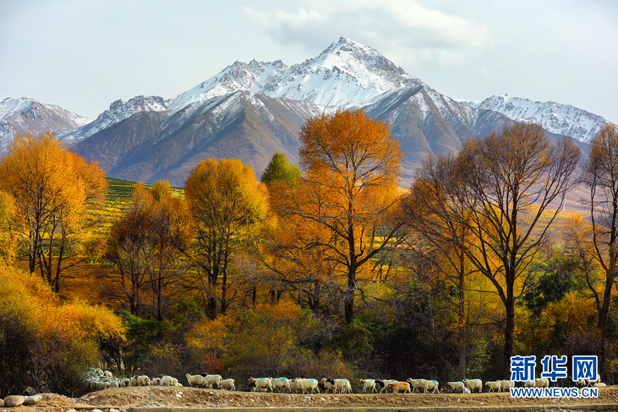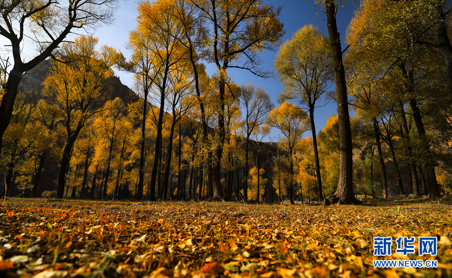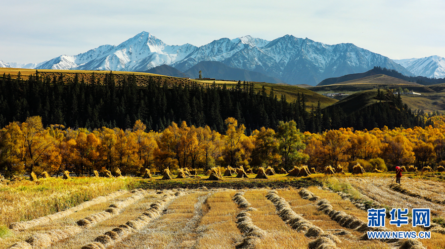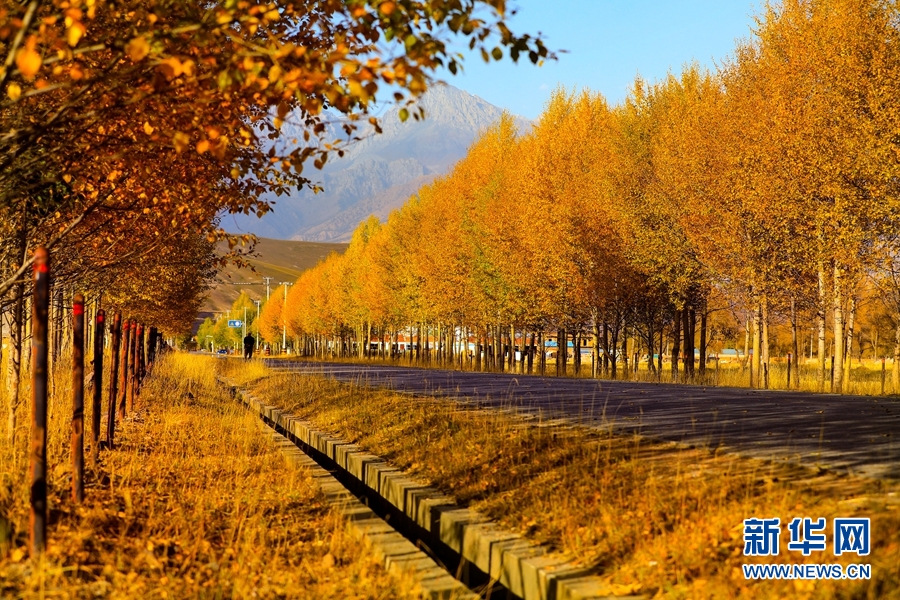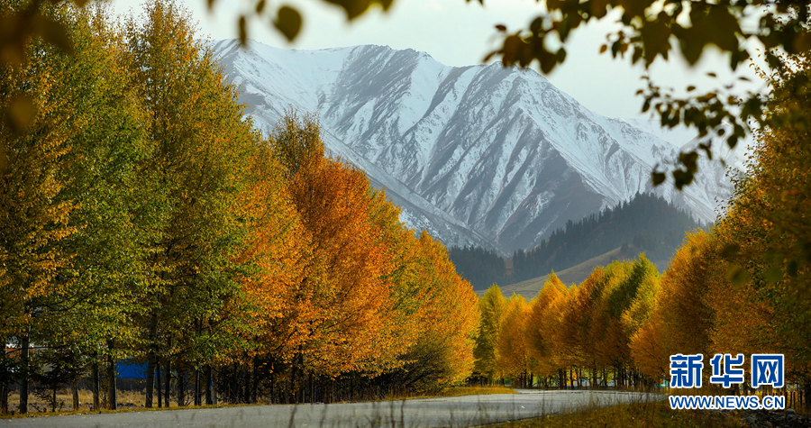 金黃色的樹木與遠山交相輝映,處處呈現(xiàn)出醉人的美景。新華網(wǎng) 蘇金元攝