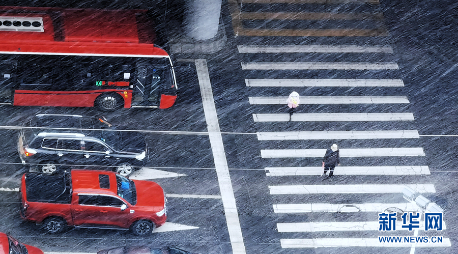 在青海省西寧市,市民在雪中行走。新華網(wǎng)發(fā)(張海東攝)