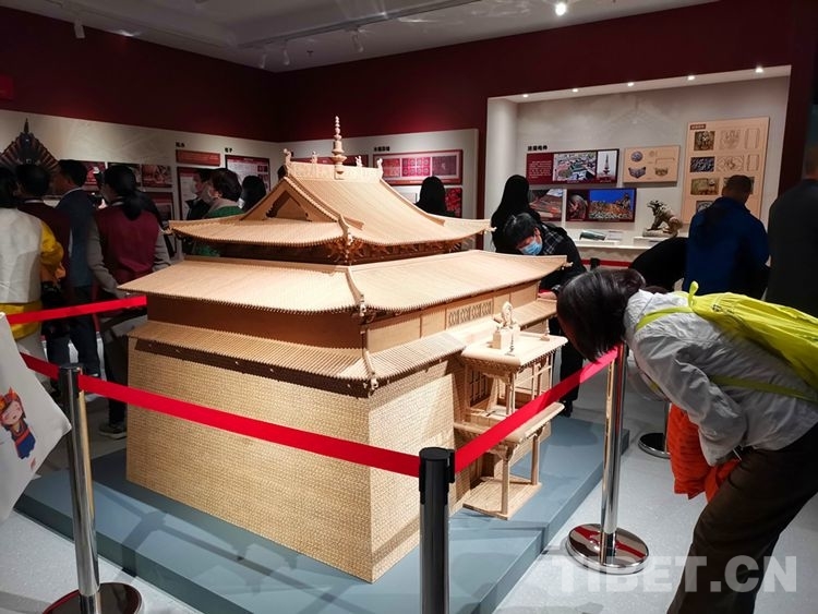 圖為觀眾觀看夏魯寺模型 攝影:王茜