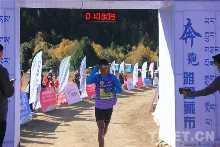 在雪山的映襯下,參賽選手們身穿各色服裝,伴隨著周邊村民的加油助威,一路抵達終點。最終,來自西藏自治區(qū)山南市的扎巴以59分02秒的成績獲得男子組第一名,邊片以1小時16分12秒的成績奪得女子組第一名。