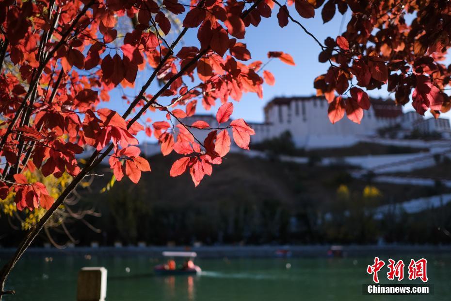 11月17日,秋冬交替,位于西藏拉薩布達(dá)拉宮腳下的宗角祿康公園內(nèi)五彩斑斕,景色宜人。中新社記者 何蓬磊 攝