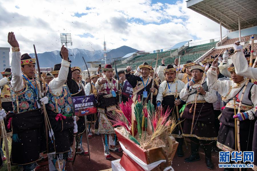 11月19日,西藏山南市錯(cuò)那縣代表隊(duì)參加賽前表演。新華社記者 普布扎西 攝