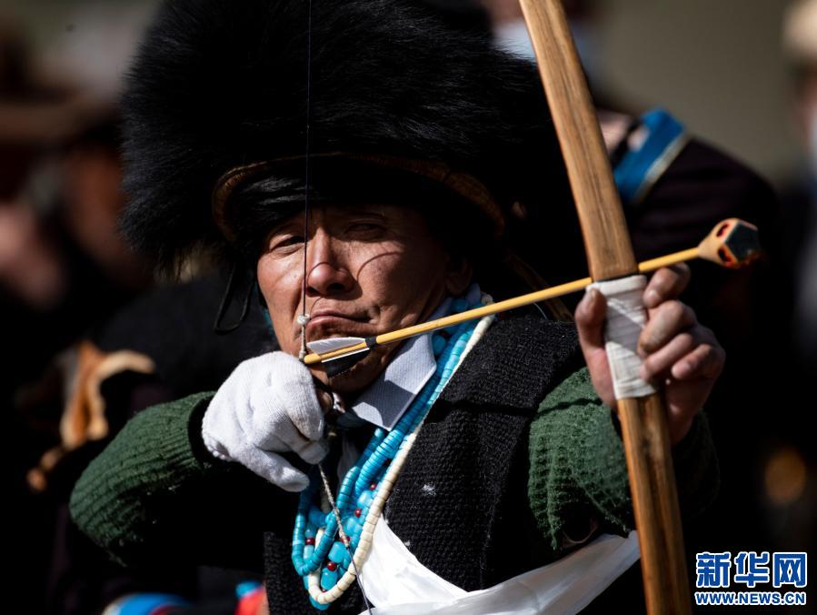 當(dāng)天是西藏林芝市工布新年大年初五,林芝市舉行盛大的響箭比賽慶祝新年,營(yíng)造健康祥和的節(jié)日氛圍。“工布響箭”藏語(yǔ)稱“畢秀”,是西藏林芝特有的一項(xiàng)民間傳統(tǒng)體育競(jìng)賽,距今已有1500多年的歷史,被列入第二批西藏自治區(qū)非物質(zhì)文化遺產(chǎn)保護(hù)項(xiàng)目。工布響箭箭頭由一個(gè)刻有小孔的木質(zhì)圓錐體組成,箭離弦后在空中飛向目標(biāo)的過(guò)程中,空氣穿過(guò)小孔,發(fā)出尖利的嘯聲,“響箭”因此而得名。在賽場(chǎng)另一邊,掛著一張攔截響箭用的布簾,其前方懸掛一個(gè)三圈環(huán)形組成的皮質(zhì)靶心,射中后,靶心內(nèi)圈隨箭脫落。當(dāng)日,來(lái)自林芝的15支參賽隊(duì)和8支箭歌隊(duì),共260多名射箭愛(ài)好者齊聚一堂,展開(kāi)了激烈角逐。