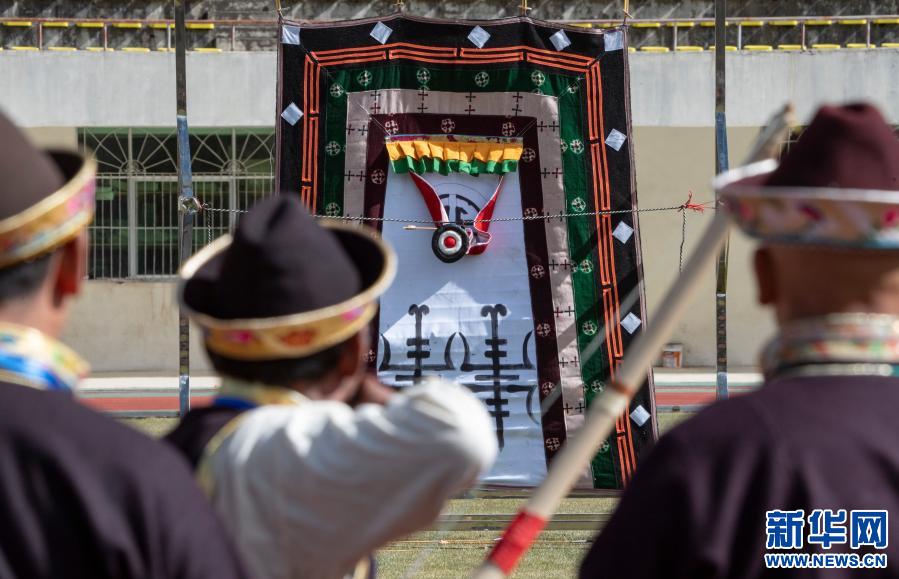 11月19日,西藏林芝市米林縣的珞巴族選手在響箭比賽中。新華社記者 普布扎西 攝