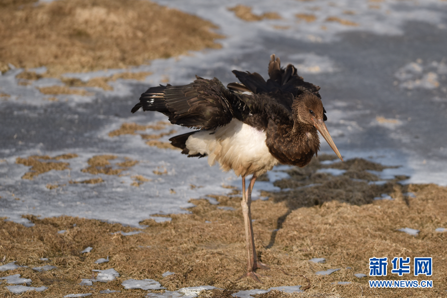 黑鸛現(xiàn)身青海西寧
