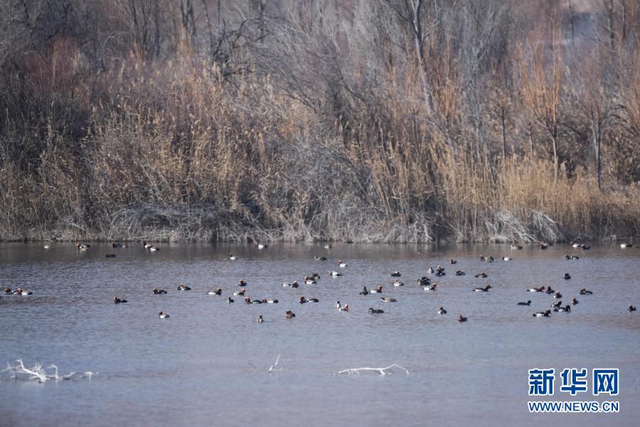 12月11日,一群赤麻鴨在千姿湖濕地公園游弋。新華社記者 吳剛 攝