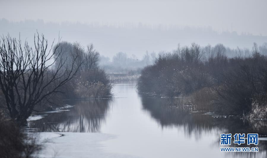 這是12月11日拍攝的千姿湖濕地公園景色。新華社記者 吳剛 攝