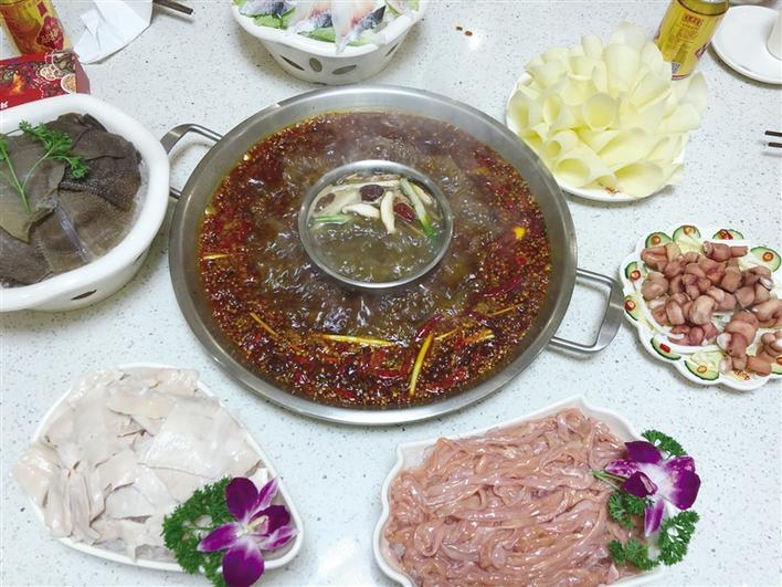 “重慶火鍋的特色全在鍋底。我們店主打冷鍋、一次性紅湯鍋,還有鍋中鍋的菌湯、番茄養(yǎng)生湯、酸蘿卜老鴨湯。這些鍋底能很好地吸收其他炒料的味道,在燙煮的時候,可以黏附在食物上,吃起來味道‘開門見山’,濃香熱辣,但又不會讓人覺得嗆喉嚨,下到胃里也沒有燒胃的感覺,湯底吃到最后還能保持清亮的本色……”重慶巴王府火鍋店長楊女士自信地說。