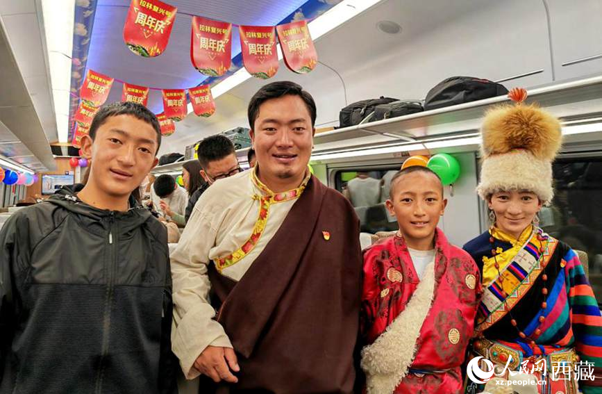 拉林鐵路開通一周年,旅客祝拉林鐵路生日快樂。人民網(wǎng) 李海霞攝