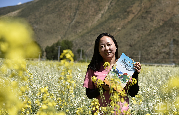 圖為墨竹工卡縣松贊文化旅游節(jié)暨第五屆油菜花節(jié)開(kāi)幕式后,現(xiàn)場(chǎng)觀眾手捧有幸抽到的開(kāi)幕式紀(jì)念品在油菜花海中留影 攝影:王媛媛