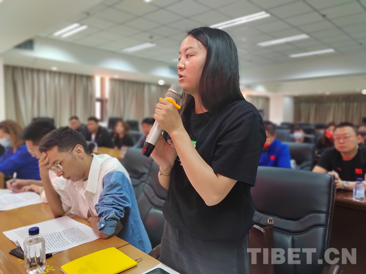 圖為2022環(huán)拉薩城自行車大賽新聞發(fā)布會現場西藏商報記者在提問 攝影:拉姆