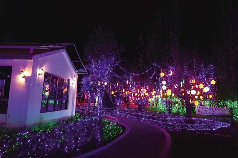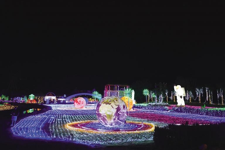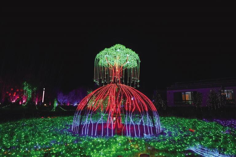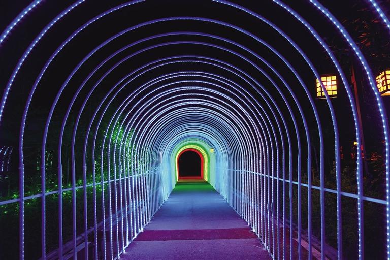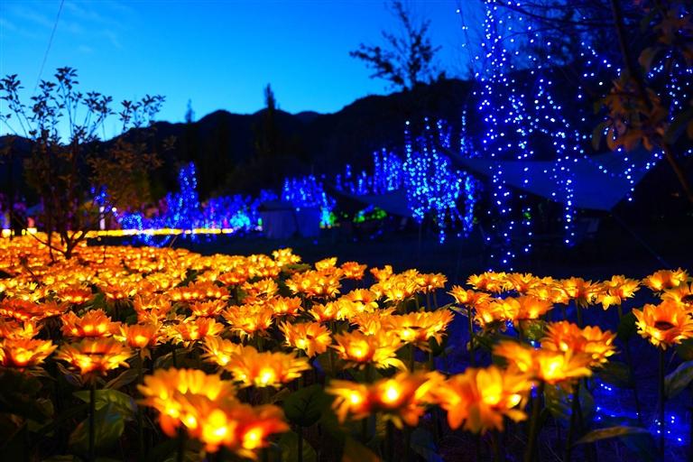 象雄美朵首屆國(guó)潮光影秀分為星際迷航、迷霧森林、遇見·螢火之光、激情北極光、時(shí)光隧道五個(gè)板塊。隨著彩燈亮起,星辰、太空人、火箭、綠森林、花海、孔雀等景觀清晰地展現(xiàn)在大家面前,通過藝術(shù)與科技巧妙地結(jié)合,立體呈現(xiàn)各種自然場(chǎng)景。