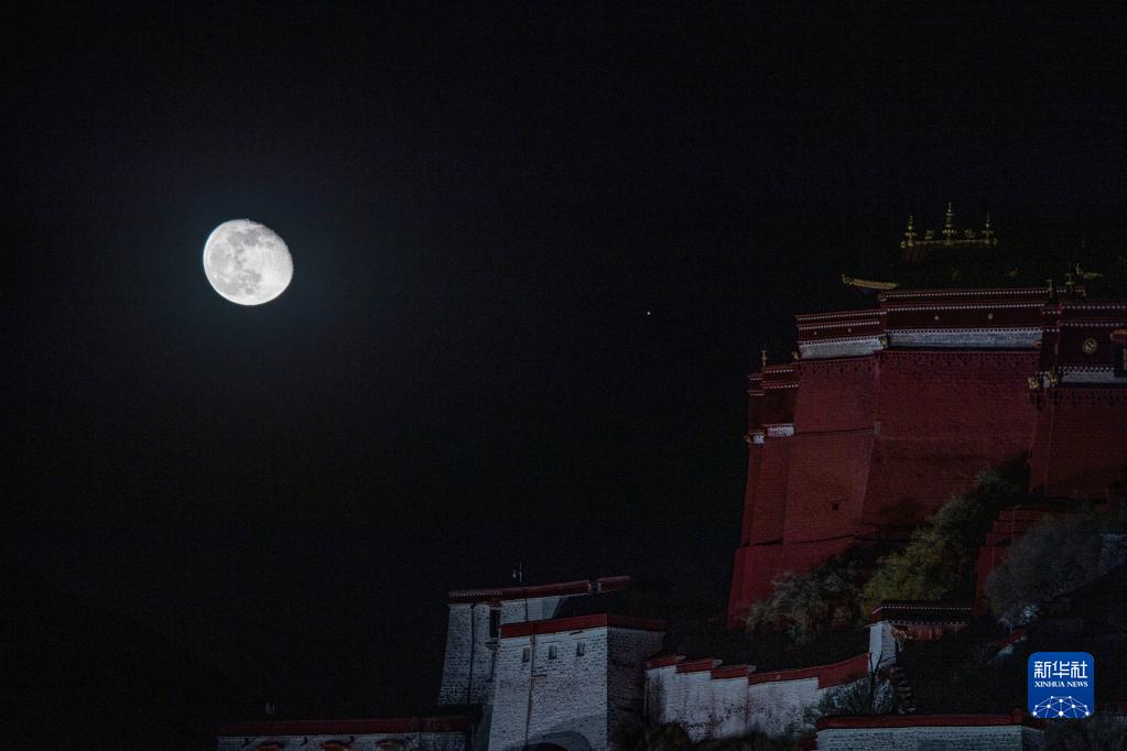 11月11日晚,一次賞心悅目的火星合月亮相天宇。這是在西藏拉薩市布達(dá)拉宮附近,記錄下的這幕“星月童話”。新華社記者 劉潁 攝