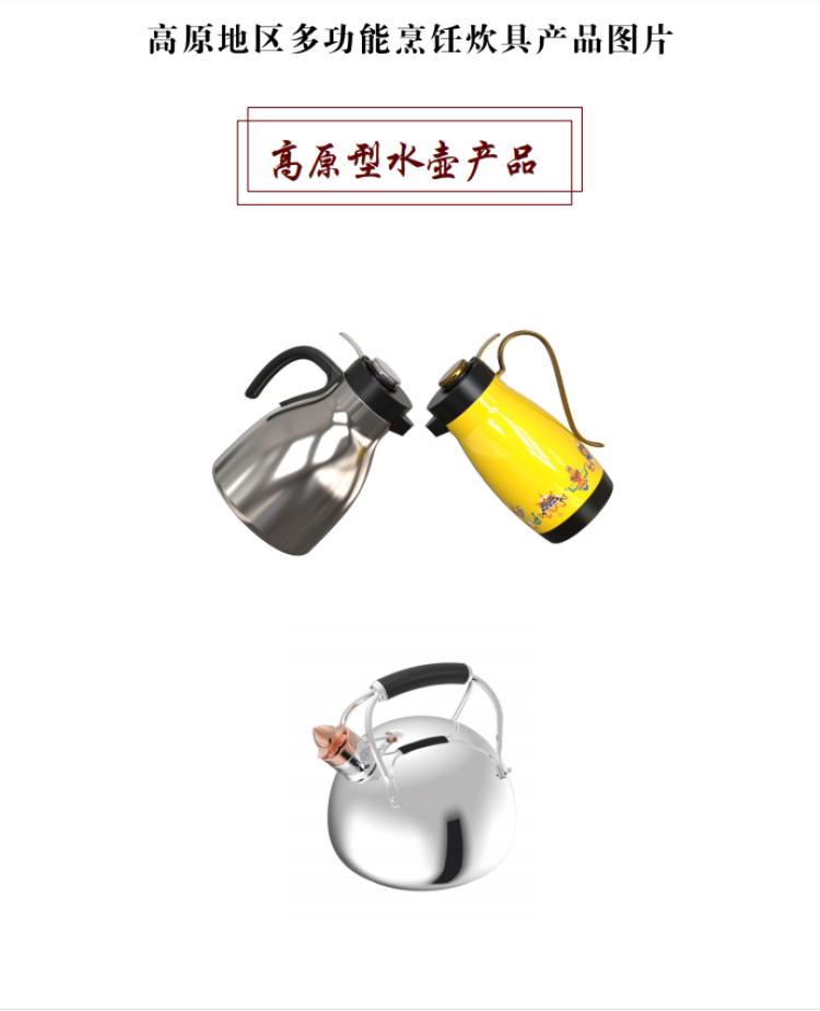 西藏自治區(qū)海拔跨度大,人民群眾生活范圍主要在800米至5000米左右,針對不同海拔高度需要不同烹飪壓力及不同烹飪時間的需求,研發(fā)的高原地區(qū)多功能烹飪炊具可實現(xiàn)一鍵調(diào)壓、多檔控壓和感溫定時功能。新研發(fā)的壓力鍋針對不同的海拔地區(qū)可以實現(xiàn)不同的壓力控制,從而在不同的沸點均能快速煮熟食物,實現(xiàn)與區(qū)外煮熟時間相同,且兼具口感,并保留食物更多的營養(yǎng)成分。新研發(fā)的高原地區(qū)專用燒水壺(明火款、電子款)也實現(xiàn)了在不同海拔地區(qū)均能與區(qū)外相同時間使壺內(nèi)水沸騰后達(dá)到100℃,從而保障高原地區(qū)廣大群眾都能喝上燒開的水?! ?/p>