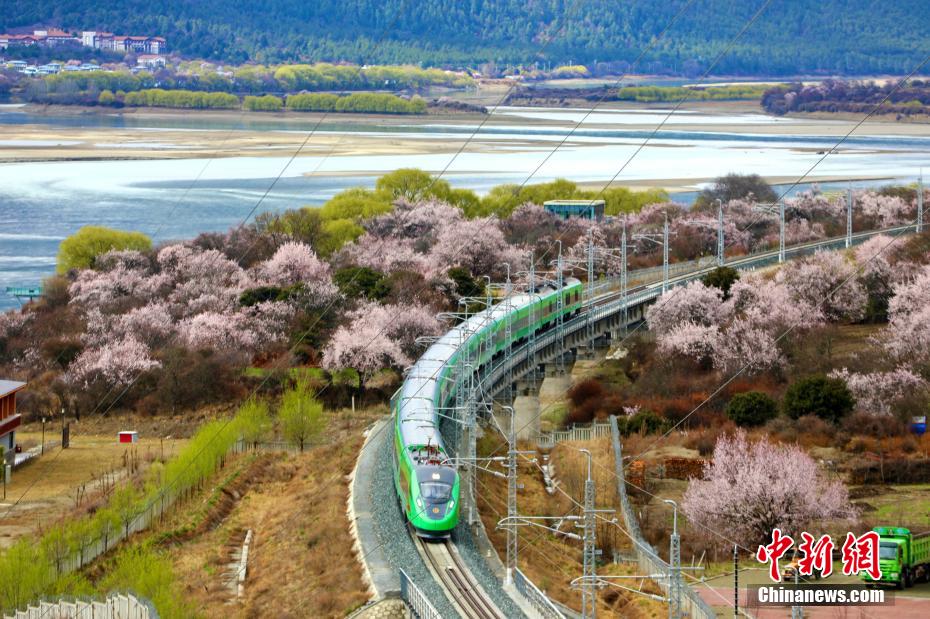 近日,中國鐵路青藏集團有限公司介紹,3月下旬至4月,拉林鐵路沿線綿延的野生桃花林盛開,藍天、白云、桃花、雪山、高原復(fù)興號動車等相互交織,形成了一幅幅美不勝收的畫面。[詳細]