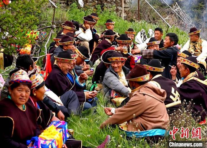 米林村處處生機盎然,有盛開的桃花、油菜花、綠色的麥田,山林間不時傳來的鳥鳴聲,似乎都是在一起祈禱今年的豐收。村民們身上還背有經(jīng)文,圍繞全村田園轉(zhuǎn)上一圈,轉(zhuǎn)到每一塊農(nóng)田前都要煨桑祈福豐收,舉行祭祀活動。祭祀活動后,能歌善舞的婦女們總是要高歌起舞,以此來表達自己喜悅的心情。