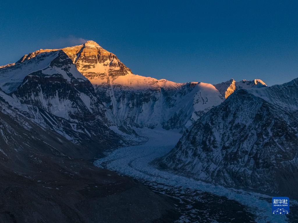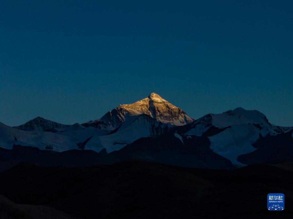 這是5月11日日落時(shí)分拍攝的珠穆朗瑪峰(無人機(jī)照片)。新華社記者 孫非 攝