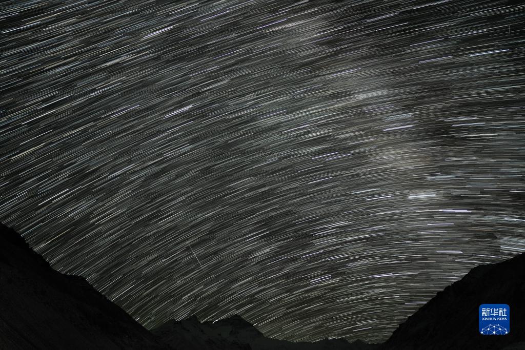 這是5月23日在珠峰大本營(yíng)拍攝的星軌(合成照片)。新華社記者 孫非 攝