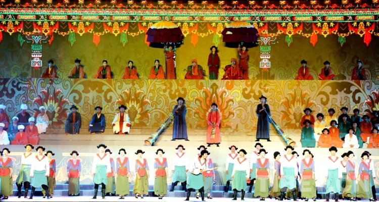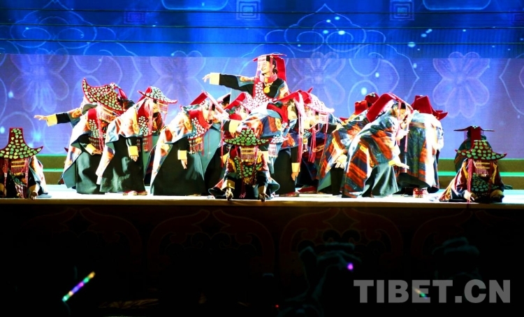 隨后盛大的開幕式文藝演出如期而至。演出共分為《悠遠古韻》《詩意微芒》《如炬經(jīng)典》《輝煌盛世》四個篇章?!队七h古韻》篇章為大型情景表演,結(jié)合古格壁畫為開場表演,展現(xiàn)出阿里人民群眾的精神面貌和獨特的阿里神韻?!对娨馕⒚ⅰ穮R集阿里地區(qū)諸多極具代表性的國家級非物質(zhì)文化遺產(chǎn)節(jié)目,展現(xiàn)阿里地區(qū)悠久燦爛的古代文明遺存?!度缇娼?jīng)典》篇章通過不同舞蹈,展現(xiàn)阿里獨具特色的民間歌舞文化?!妒⑹老腋琛穭t展現(xiàn)了阿里地區(qū)以熱情昂揚的姿態(tài)在全力以赴推動建設(shè)雪域高原“西部明珠”中取得的一系列可喜的成績。