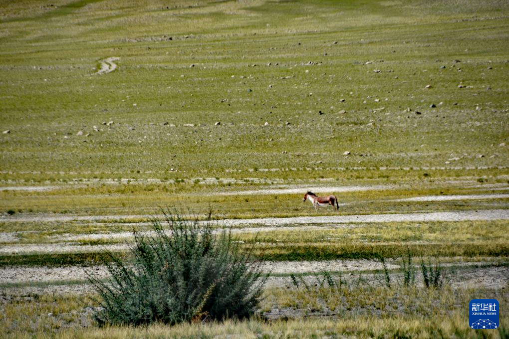 別若則錯(cuò)周邊的藏野驢(8月25日攝)。新華社記者 劉文博 攝
