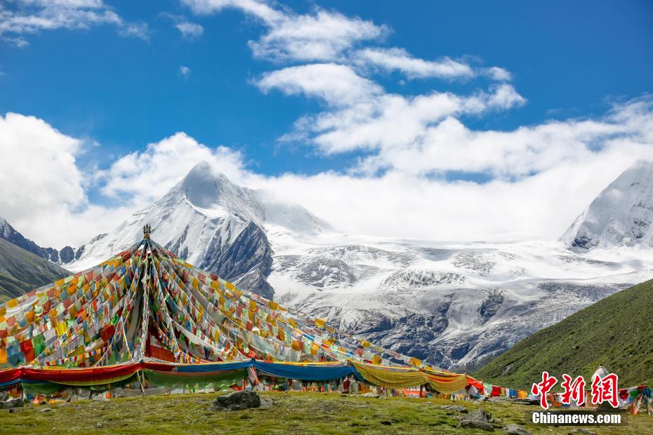 8月27日,記者在西藏那曲市比如縣拍攝到薩普雪山美景。薩普因雪豹而得名,位于比如縣羊秀鄉(xiāng)普宗溝內(nèi),全稱薩普貢拉嘎布。主峰色浦崗日海拔6996米,是喜馬拉雅山主峰北部的念青唐古拉山脈東段的最高峰。在薩普山腳有一個清澈如鏡的湖,全名堆烔薩錯查仁,又稱薩木措,是由雪山千年冰雪融化所形成,自山腳延伸,分為兩部分,靠近山腳下的為冰川湖泊,終年不化;另一部分為主湖,湖水碧綠,湖內(nèi)魚兒成群。圖為薩普雪山景色。