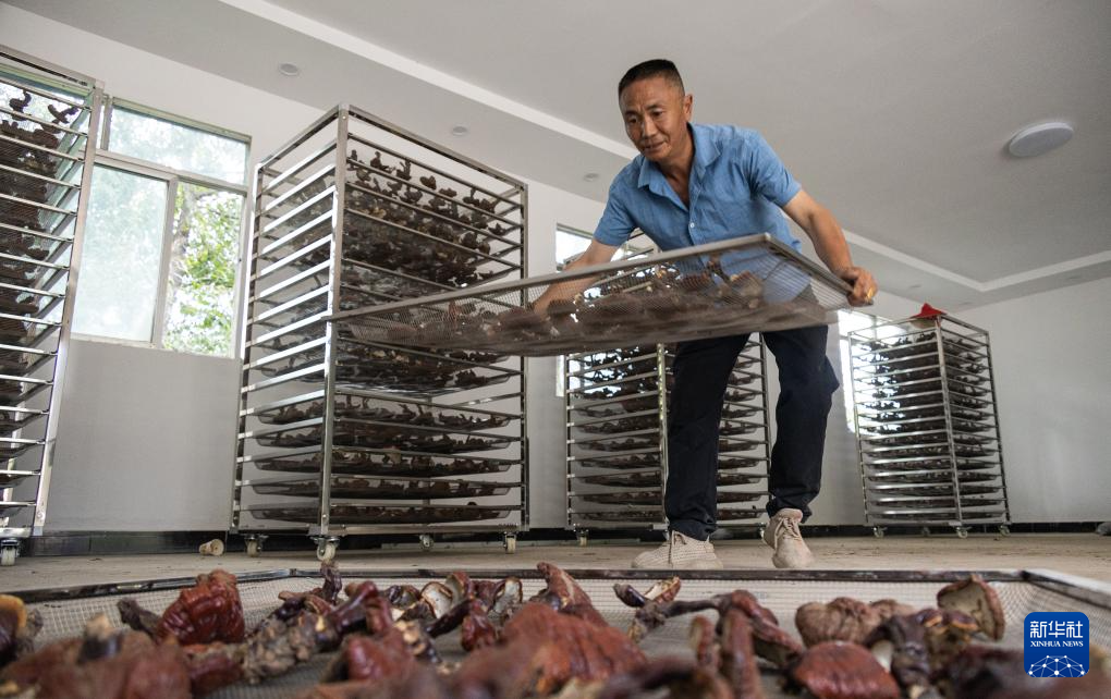 ??拉巴頓珠正在晾曬靈芝(9月9日攝)。新華社發(fā) (丁增尼達(dá) 攝)