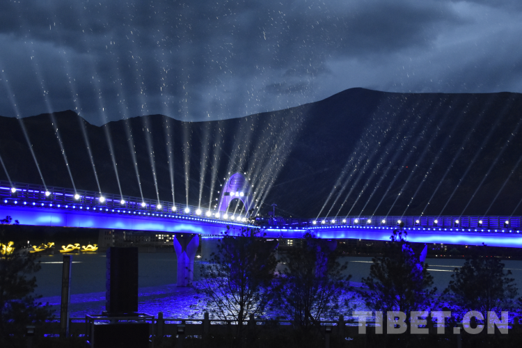 圖為在拉薩高新區(qū)舉辦的2023全球數(shù)字經(jīng)濟(jì)大會(huì)拉薩高峰論壇開幕式“數(shù)字之夜”城市脈搏點(diǎn)亮儀式 攝影:次旦拉姆