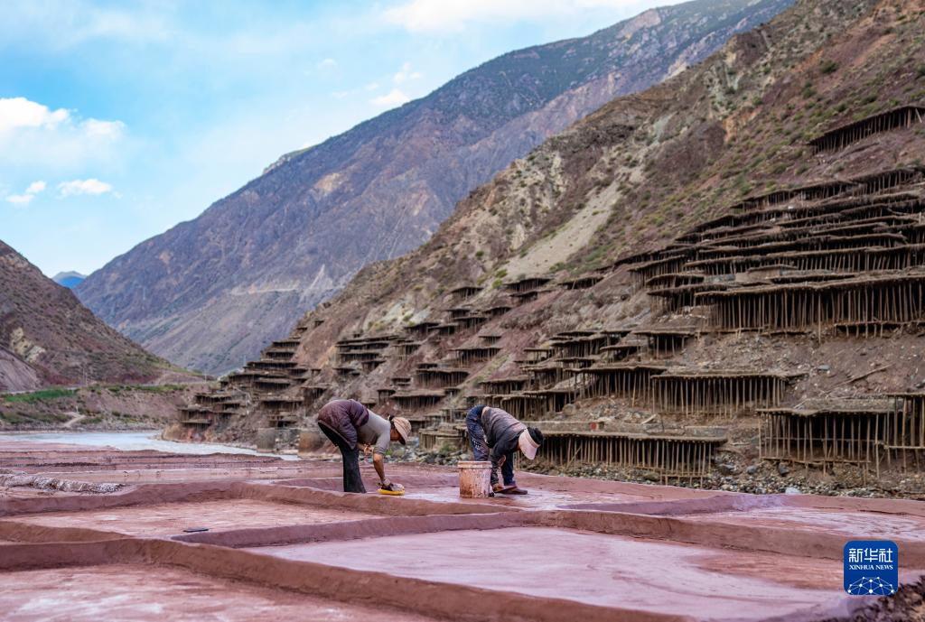 西藏昌都市芒康縣納西民族鄉(xiāng)村民在鹽田里勞作(10月20日攝)。新華社記者 孫非 攝