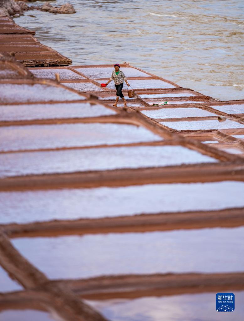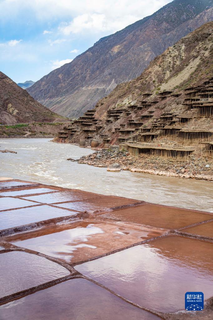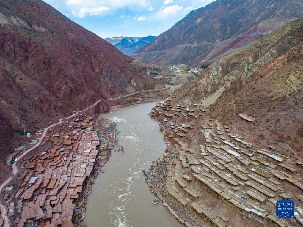 西藏昌都市芒康縣納西民族鄉(xiāng)位于瀾滄江畔,當?shù)貜奶拼_始制鹽,距今已延續(xù)1300余年。鹽田在瀾滄江兩岸依山而建,由多根木柱搭架,架上用透水性強的泥土鋪成平面夯實。當?shù)卮迕袢员3种嫉氖止覃}方式,他們從瀾滄江畔的鹽井、鹽池中取出鹵水倒入鹽田,經(jīng)陽光蒸曬、風干,結晶成鹽。遠遠望去,鹽田錯落有致,景色奇美。