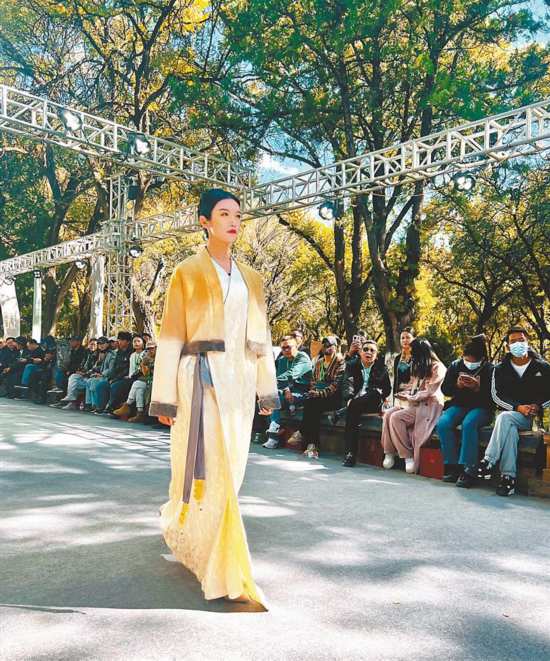來自杭州的模特王添玉給記者介紹了他展示的“星落”系列,該系列在傳統(tǒng)日喀則服飾的基礎(chǔ)上增添了許多時尚元素,色彩、廓形、材質(zhì)和制作工藝方面都有創(chuàng)新,更受當(dāng)下年輕人青睞。