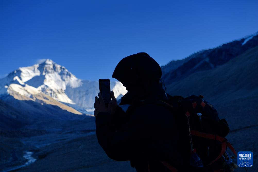 深秋,西藏日喀則市定日縣天高氣爽,游客前來觀賞世界最高峰——珠穆朗瑪峰?! ??