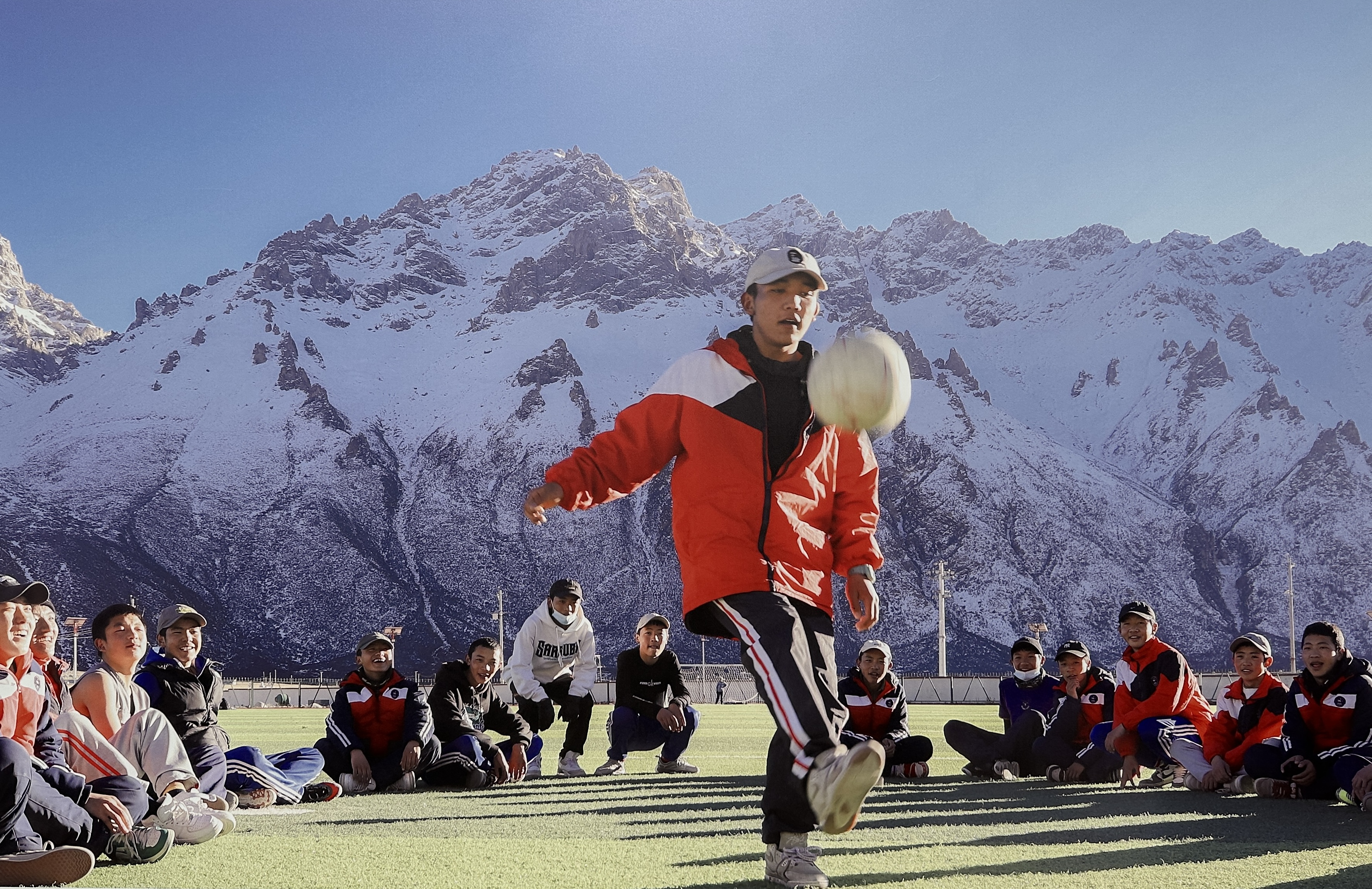 圖為參展攝影作品:《雪山下的足球場(chǎng)》 攝影:貢嘎來松