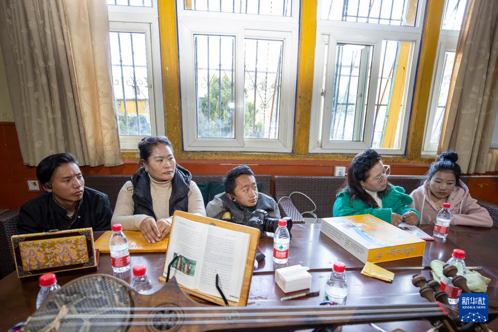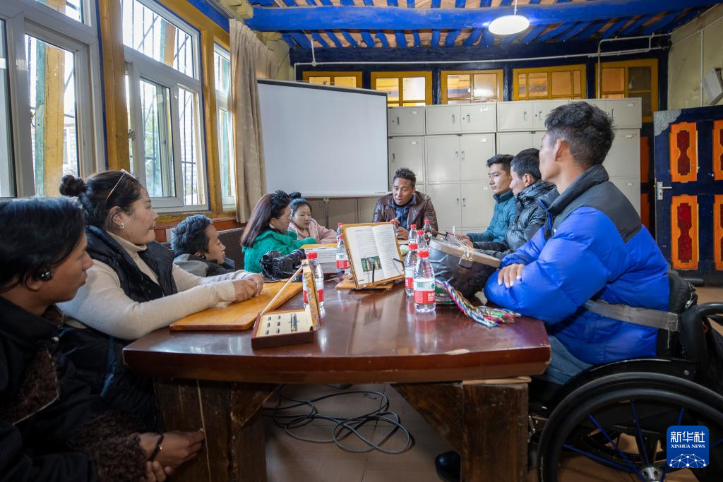 西藏拓崗文化傳播有限公司負責人覺列(右一)在直播前與直播團隊討論直播方案(11月10日攝)。新華社記者 姜帆 攝 ??