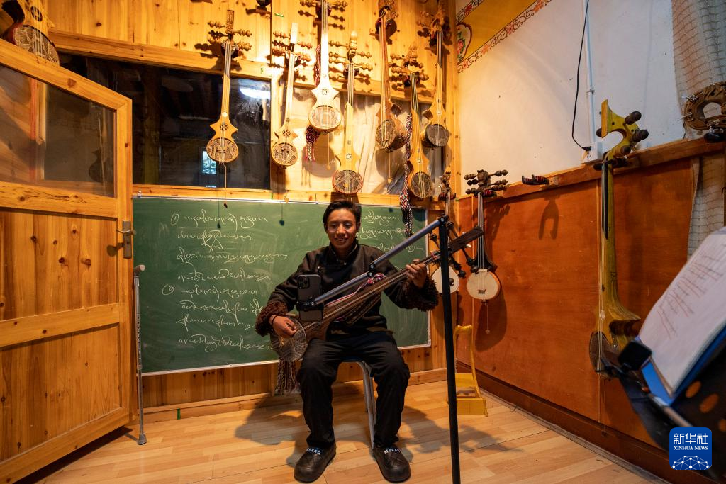 西藏拓崗文化傳播有限公司主播邊桑在直播銷售西藏傳統(tǒng)樂器扎念琴(11月10日攝)。新華社記者 姜帆 攝 ??