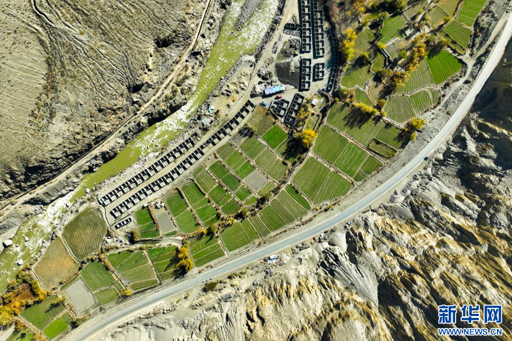 11月16日,西藏隆子縣加玉鄉(xiāng)境內(nèi)拍攝的村莊與農(nóng)田(無人機(jī)照片)。新華網(wǎng) 柑丹鴦琦 攝