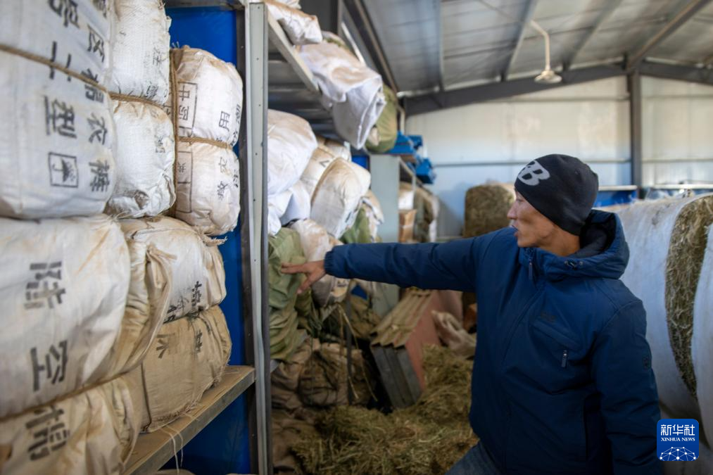 當地干部在俄久鄉(xiāng)農牧業(yè)防抗災物資儲備庫里盤點物資庫存。這里草料、爐子、棉服、煤炭、除雪工具等一應俱全(12月18日攝)。新華社記者 姜帆 攝