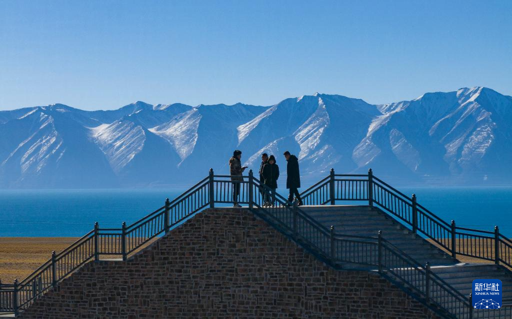 這是當(dāng)惹雍錯旁剛剛竣工的棧道和觀景臺(無人機(jī)照片,12月20日攝)。新華社記者 格桑朗杰 攝