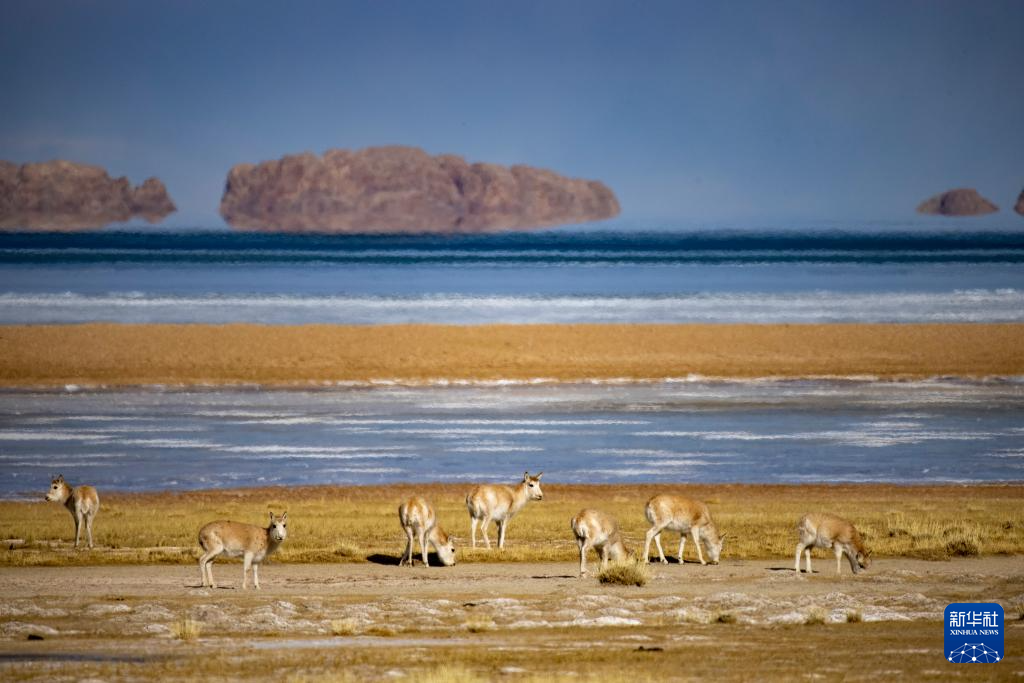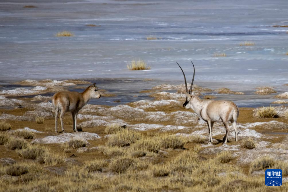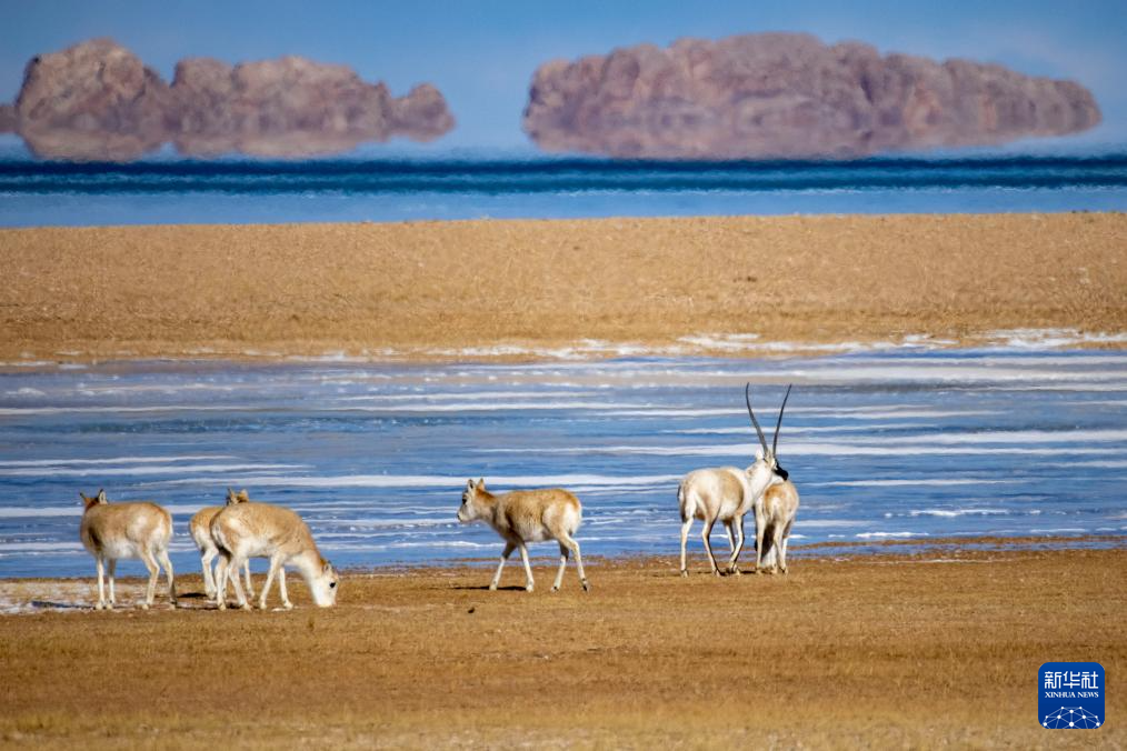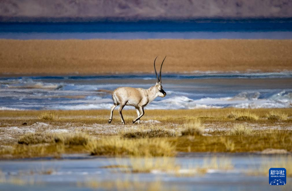 這是在色林錯湖畔拍攝到的藏羚羊(1月5日攝)。新華社記者 旦增尼瑪曲珠 攝
