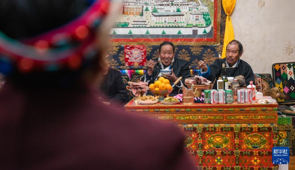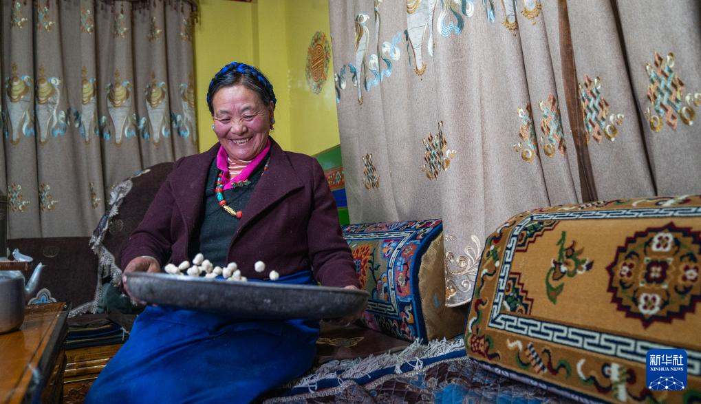 在日喀則市桑珠孜區(qū)洛瑪彩林社區(qū),59歲的巴桑普尺掌勺家里的“古突”宴。和面、揉面、煮面,火爐上一鍋牦牛肉湯熱氣騰騰。巴桑普尺高興地說(shuō):“今年是第一次在新房里過(guò)年,很開(kāi)心?!?/p>