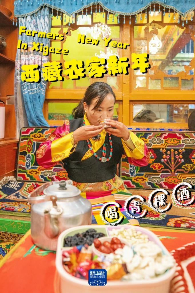 在有著“西藏糧倉(cāng)”美譽(yù)的日喀則,手工釀制的青稞酒醇厚美味,是過年歡慶的必備飲品(1月10日攝)。