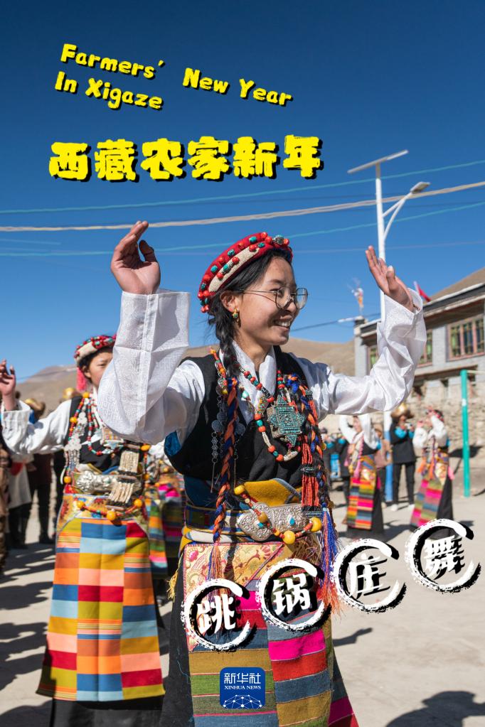 日喀則市白朗縣東喜鄉(xiāng)思古龍村男女老少齊出動(dòng),跳起歡快的鍋莊舞辭舊迎新(1月13日攝)。