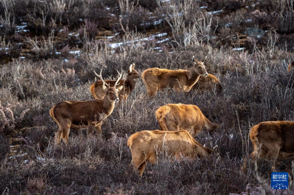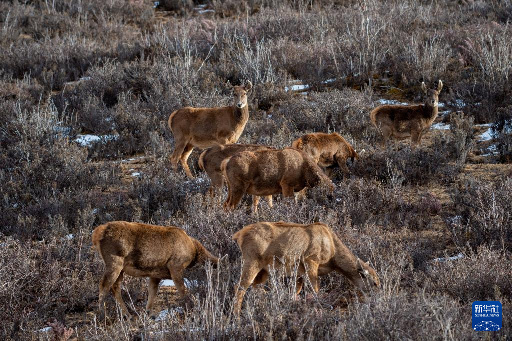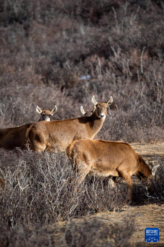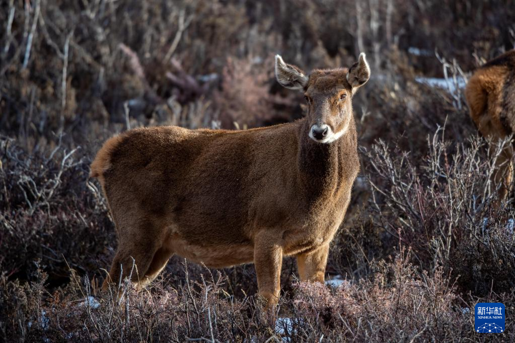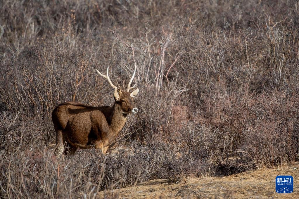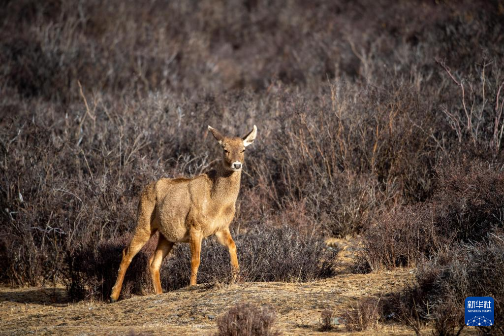 這是在西藏山南市桑日縣拍攝的馬鹿(1月14日攝)。新華社記者 旦增尼瑪曲珠 攝