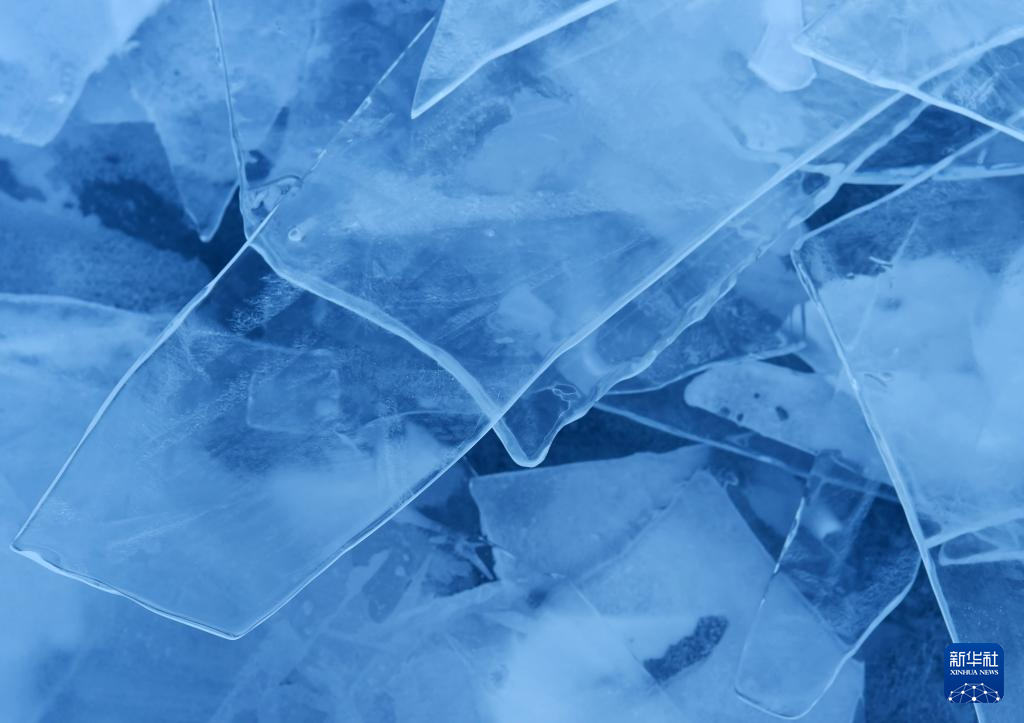 瑪旁雍錯湖面上的冰像碎玻璃一樣透亮(1月29日攝)。新華社記者 關(guān)明輝 攝 ??