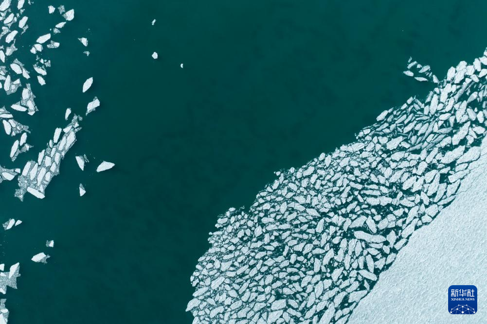 瑪旁雍錯湖面上的冰堆積在一起,呈現(xiàn)出各式各樣的造型(1月29日攝,無人機(jī)照片)。新華社發(fā)(旦增努布攝) ??