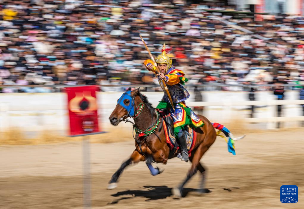 馬術在西藏是吉祥、勇敢和智慧的象征。騎手們英姿颯爽,用騎馬拾哈達、騎馬射箭等精彩表演為觀眾送上新年的祝福。 ??