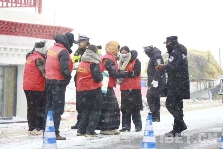 中國西藏網(wǎng)訊 近日,西藏氣象局連續(xù)發(fā)布大風(fēng)和暴雪黃色預(yù)警。22日,受西風(fēng)槽影響日喀則市亞東縣帕里鎮(zhèn)范圍降暴雪,G562部分道路積雪厚度達(dá)20余厘米。降雪降溫對交通影響較大,為守護(hù)轄區(qū)內(nèi)道路安全,帕里鎮(zhèn)四社區(qū)駐村工作隊組織12名45歲以下黨員身著紅色志愿服,利用社區(qū)愛心驛站配合執(zhí)勤交警,以輪班形式對轄區(qū)內(nèi)國道沿線進(jìn)行不間斷巡邏,重點對急彎陡坡、橋面、風(fēng)吹雪等路段進(jìn)行不間斷巡查,警民協(xié)作確保道路安全暢通。