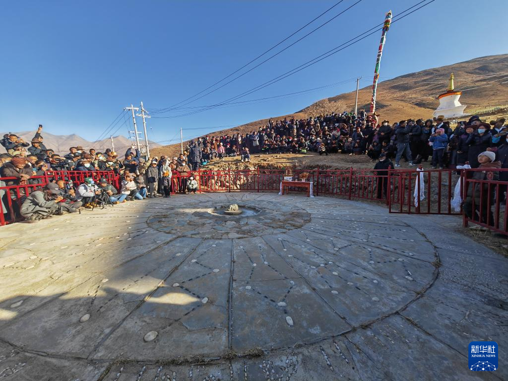 就在4天前,達(dá)布天文觀測臺附近圍著身著盛裝的村民。9時50分,陽光穿過測孔樓頂?shù)娜展獬隹?,直射?9米外的測光石上。這一刻,太陽、日光出口與測光石連成一條直線,標(biāo)志著拉薩河以東區(qū)域的春灌時間到來。