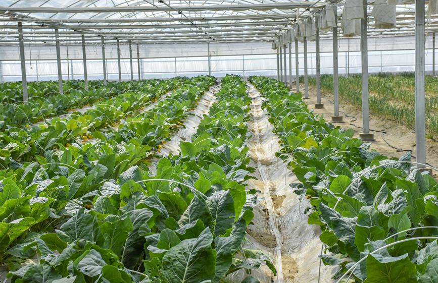 戈壁設(shè)施農(nóng)業(yè),不是簡單地在戈壁灘上開墾土地發(fā)展農(nóng)業(yè),而是要將光、熱、水、肥、土壤等一系列生產(chǎn)要素進(jìn)行合理配置。綠之源的規(guī)劃建設(shè),走出了一條節(jié)地、節(jié)水、高效循環(huán)的戈壁生態(tài)農(nóng)業(yè)發(fā)展路子。節(jié)地,充分利用了閑置的戈壁荒灘資源,不占耕地,有效解決了菜糧爭地矛盾;節(jié)水,日光溫室作物生產(chǎn),全部配套了膜下滴灌技術(shù),使有限的水資源得到了高效利用;高效循環(huán),溫室采取“套種”種植模式,讓土地不空茬,連作多種作物,有效提高溫室利用率,實現(xiàn)“全年種植、全年采收”,改善了土壤沙化環(huán)境,提升了土壤地力,更是提高了蔬菜品質(zhì)。