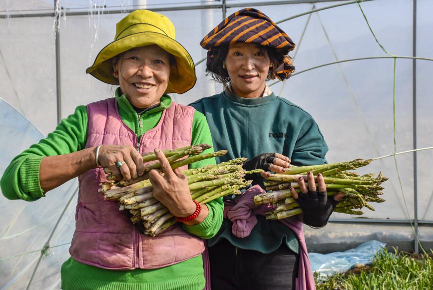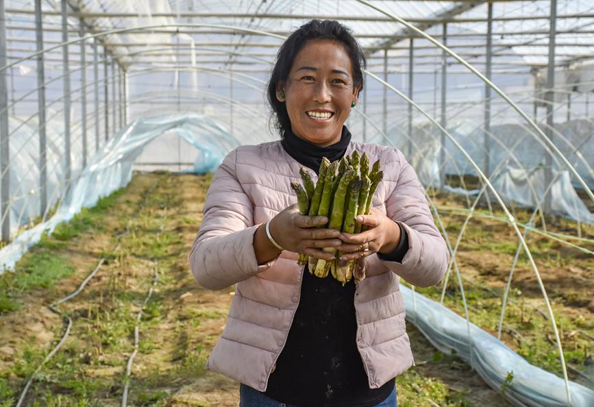 章達(dá)村村民次仁卓瑪展示高原有機蘆筍。劉楓攝