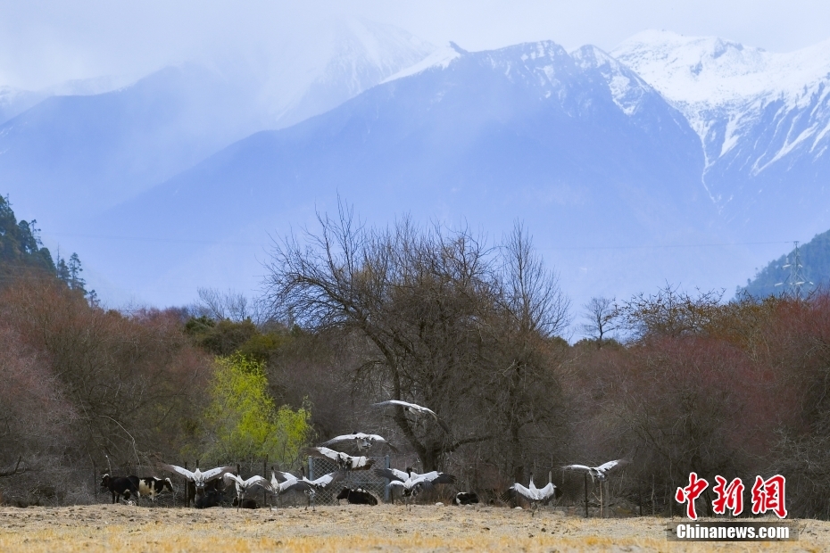 3月30日,在西藏林芝市巴宜區(qū)更章門巴民族鄉(xiāng),黑頸鶴與周邊的村莊、桃花、雪山融為一體,成為春日里的一道靚麗的風景線。[詳細]